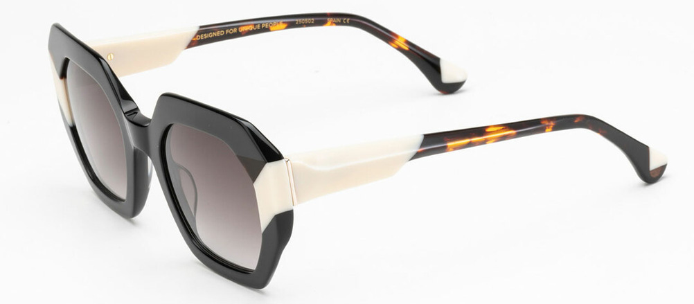 "Con una silhouette geometrica, Noe si distingue per il suo design moderno. Realizzato in acetato italiano, presenta due laminazioni sul frontale, aste a contrasto e terminali con inserto in legno. Le cerniere OBE-hinge a 5 assi, con la W incisa, offrono comfort e resistenza. Dotato di lenti da sole ZEISS CR39 con protezione UVA/UVB, offre grande nitidezza e comfort visivo.