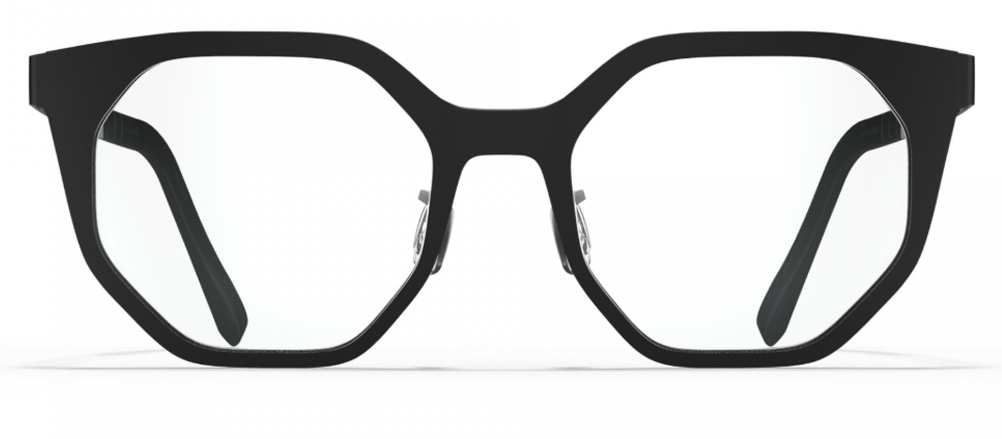 Occhiale da vista ricavato da un unico blocco di Titanio, integralmente realizzato in Italia al Blackfin Black Shelter Sustainable Factory.