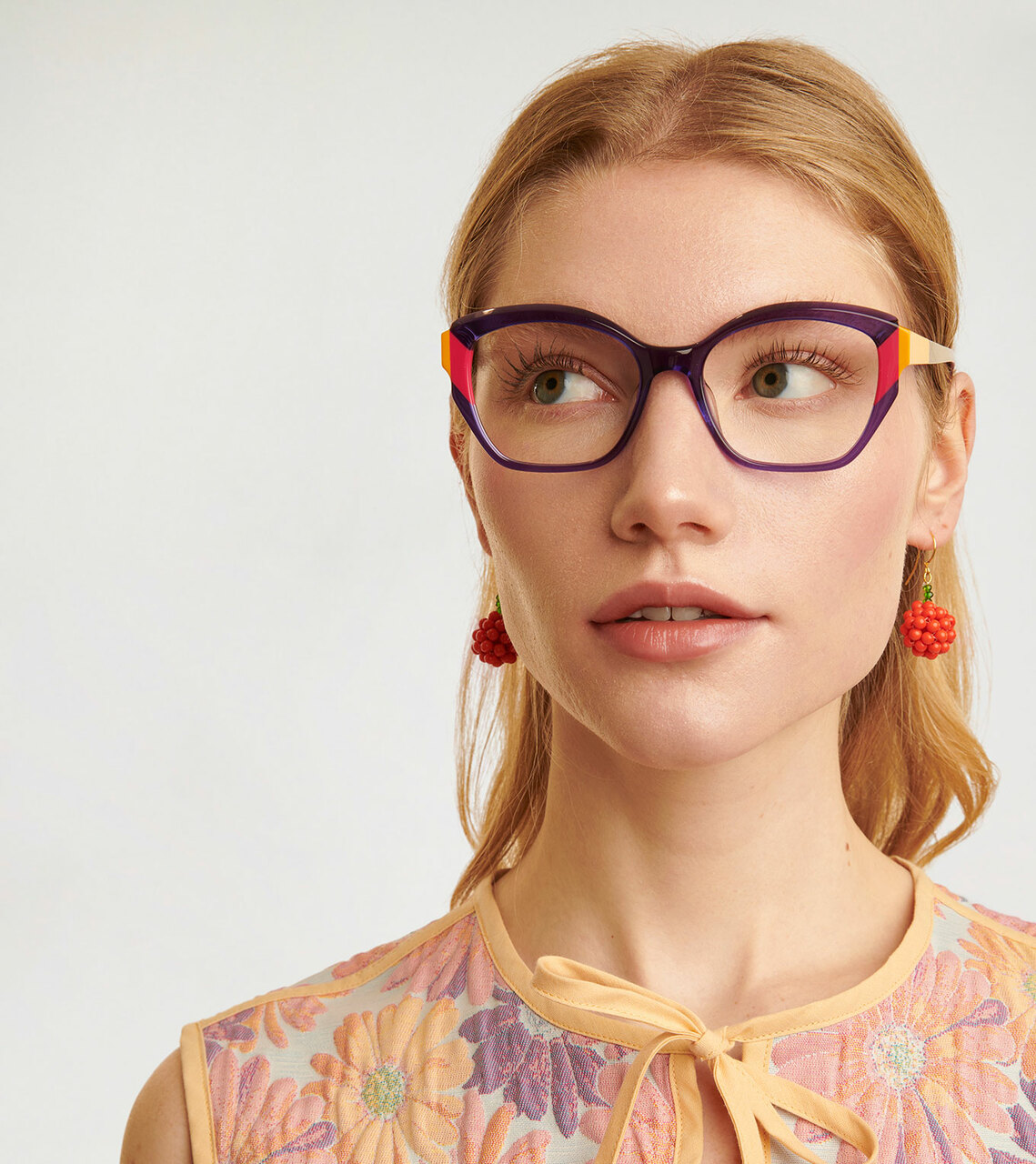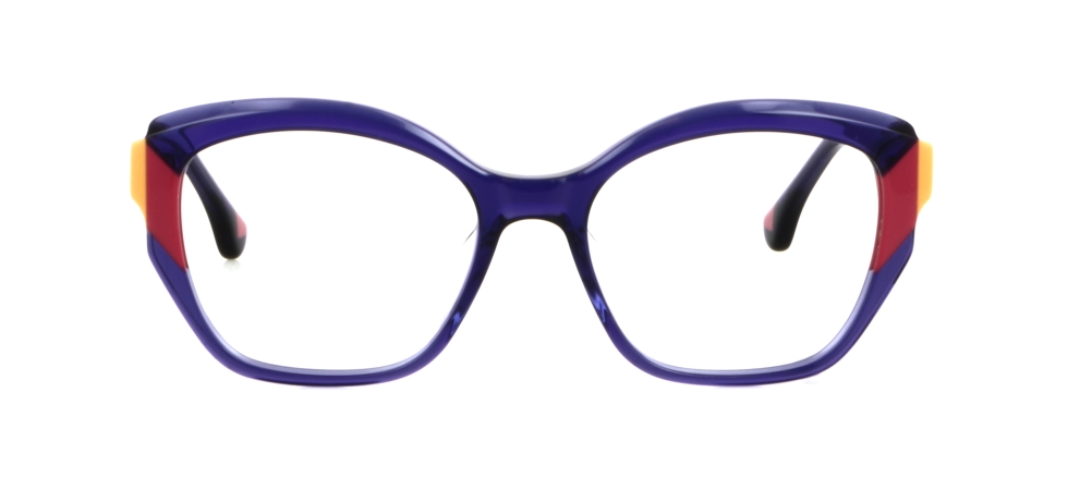 Midway presenta una montatura a forma di farfalla, realizzata in acetato fresato, con triplo laminato sui lati.