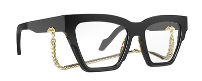 Ciò che indubbiamente caratterizza il design di questo modello è il vistoso logo in metallo sulle aste al quale è possibile appendere la catenina in alluminio di cui è corredato.